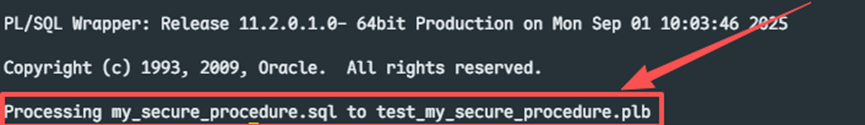 wrap iname=D:\sql\my_secure_procedure.sql oname=D:\sql\my_secure_procedure.plb加密成功提示